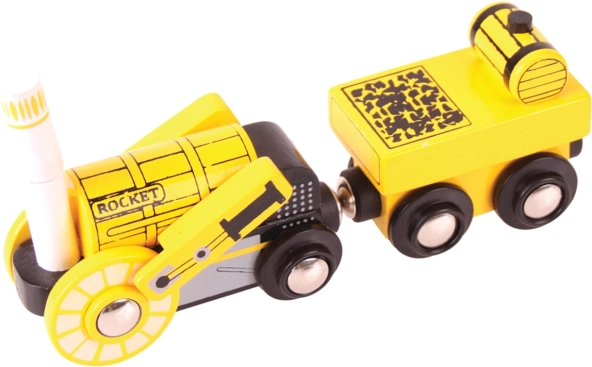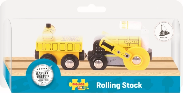 Objevte kouzlo zlatého věku železnic s dřevěnou replikou lokomotivy Rocket od Bigjigs Rail. Tento krásný model je vyroben z kvalitních a udržitelných přírodních materiálů, čímž zajišťuje dlouhou životnost a odolnost proti opotřebení.