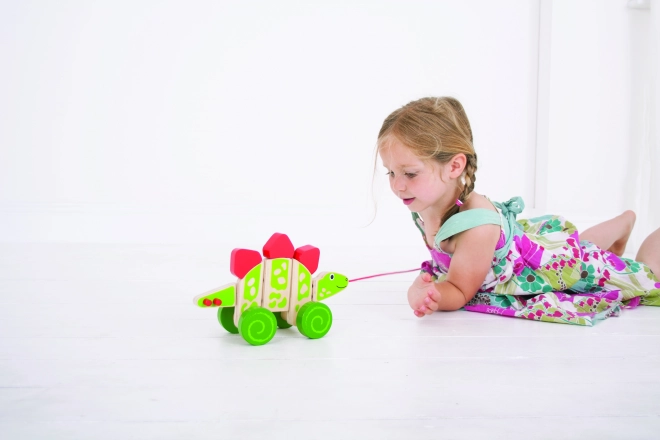 Roztomilý tahací dinosaurus ve tvaru stegosoura od Bigjigs Baby rozvíjí hrubou motoriku, obratnost a sebevědomí při prvních krůčcích. Dřevěná hračka s barevnými kolečky a pohyblivými klouby nabízí spoustu zábavy doma i na procházkách.