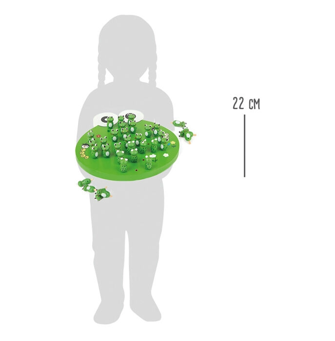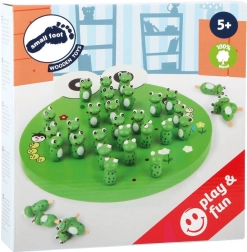 Dětská dřevěná hra Solitér ve tvaru žáby od small foot přináší klasickou logickou zábavu v roztomilém provedení. Cílem je po skocích odebírat žabky a zanechat co nejméně figurek na desce. Podporuje logické myšlení, koncentraci a strategické plánování. Díky kompaktním rozměrům je skvělá na cesty a její odolné dřevěné zpracování a barevný design potěší děti i rodiče.