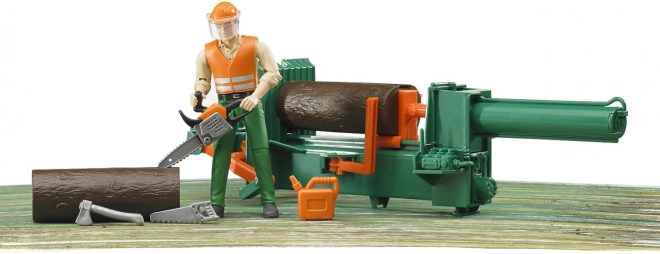 Součástí balení je figurka pracovníka s vestou a přilbou s clonou, štípačka dřeva, 2 špalky a kompletní sada nářadí – sekera, ruční pila, motorová pila a kanystr na benzín. Děti tak mohou trénovat jemnou motoriku i fantazii při bezpečné a kreativní hře.
