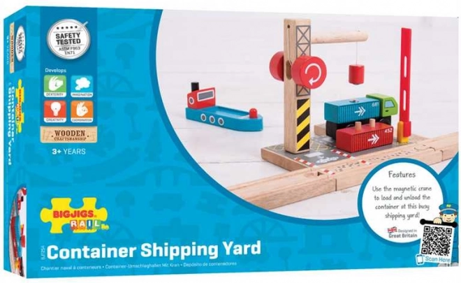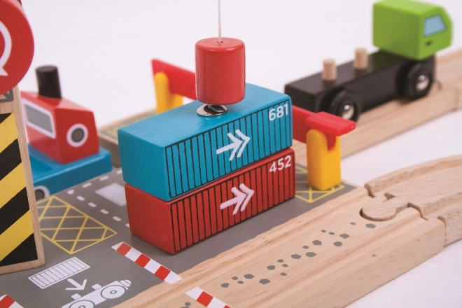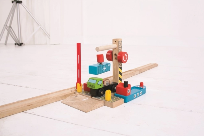 Objevte parádní dřevěné překladiště s funkčním magnetickým jeřábem, které dětem přiblíží svět přístavů a železnice. Set obsahuje dřevěné nákladní auto s kontejnery a robustní jeřáb pro snadné nakládání a vykládání. Celé provedení je bezpečné, odolné a láká k otevřenému hraní.