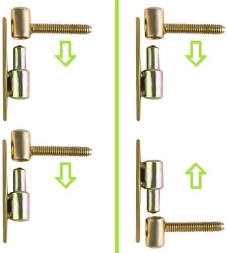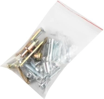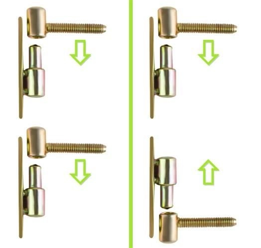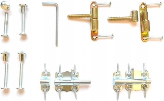 - 1× branka, 2× čepové panty, 12× malé vruty, 4× střední vruty (pro dřevo), 2× podkovičky pro boční jištění, 2× šroub s půlkulatou hlavou, 2× široké podložky, 2× matice motýlek, 2× posuvné západky s dvojitým zabezpečením
