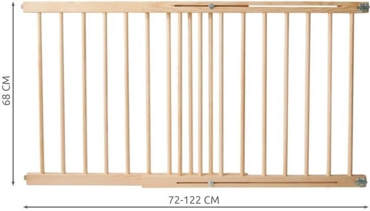 Tato univerzální branka z kvalitního smrkového dřeva je navržena pro bezpečné oddělení prostor v domácnosti. Šířka 72–122 cm umožňuje montáž do většiny standardních průchodů a na schodiště. Zaoblené hrany a precizně vyhlazený povrch zvyšují bezpečnost a komfort každodenního používání.
