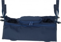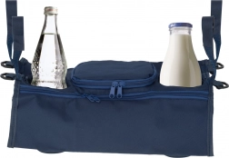 Praktický organizer na kočárek s dvěma držáky na lahve, prostornou zipovou kapsou a menší kapsičkou na zip. Snadno se upevňuje pomocí pásků na suchý zip a udrží všechny nezbytnosti po ruce – od plenek a ubrousků po hračky, telefon a láhev s mlékem či nápojem.