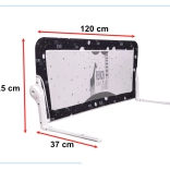 Montaž je naprosto jednoduchá. Stačí spojit jednotlivé části rámu s textilní síťkou a zasunout je pod matraci. Díky skládacím pantům můžete zábranu snadno složit, aniž by vyčnívala nad matrací.