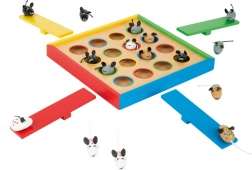 Malá a zábavná dřevěná hra, která spojuje napětí, zručnost a strategii. Vhodná pro děti od 4 let. Dřevěné myšky různých barev a čtyři houpačky čekají na vaši přesnou mušku.