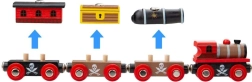 Pirátský vlak od Bigjigs Rail je ideální volbou pro malé dobrodruhy. Tato sada obsahuje lokomotivu a tři detailně zpracované vagónky s klasickým magnetickým spojováním. Kompatibilní se všemi dřevěnými železničními systémy.