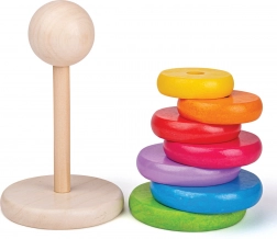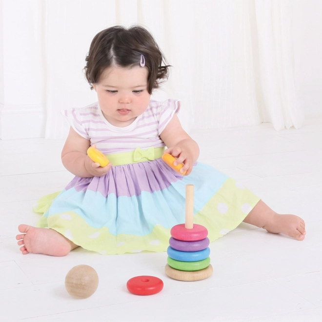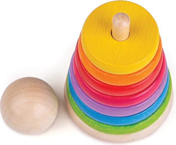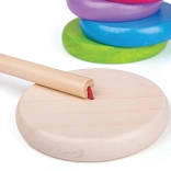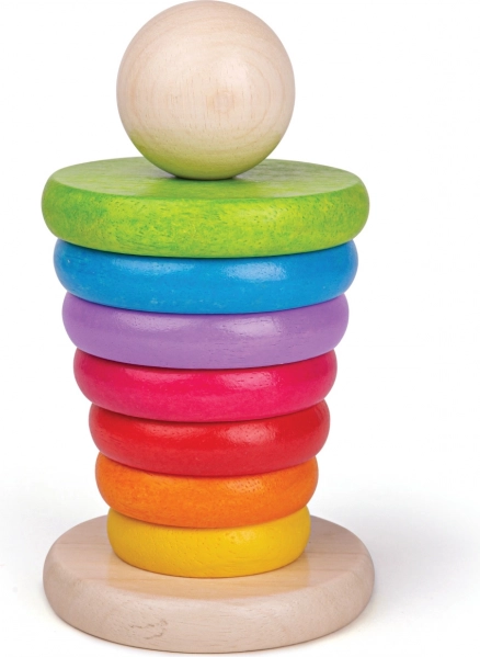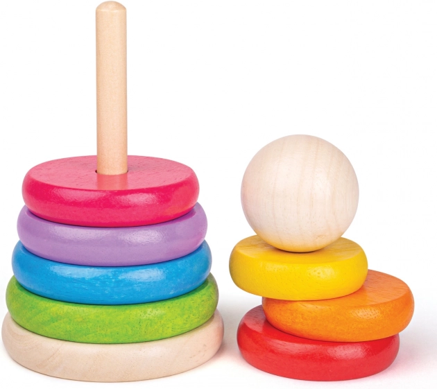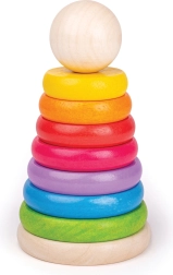 Tento dřevěný stohovací panáček je ideální hračkou pro rozvoj jemné motoriky a koordinace rukou a očí. Stohování kroužků dle velikosti nejen baví, ale také učí děti rozlišovat velikosti a barvy.