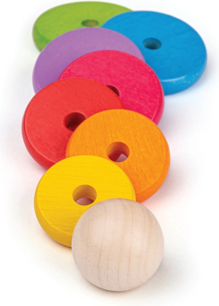 Tato hračka obsahuje 9 kroužků v duhových barvách, které oživí každou hru a pomohou v rozlišování barev.