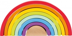 Tato robustní dřevěná duha je perfektní pro nejmenší. Díky živým barvám láká děti ke hraní a rozvíjí jejich jemnou motoriku i kreativní myšlení. Každá sada obsahuje bílou kouličku, která doplňuje celkový dojem a nabízí další možnosti k hraní.