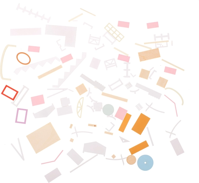• Balení obsahuje: stavební díly domečku, prvky vybavení a dekorace interiéru, lepidlo, podrobný obrázkový návod, nástroje (pravítko, nůžky, pinzeta, nožík a šroubovák).