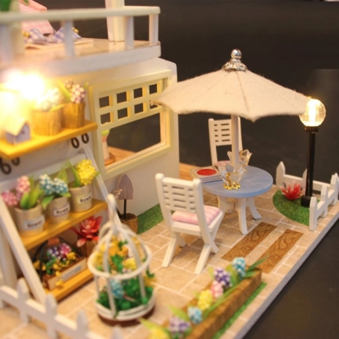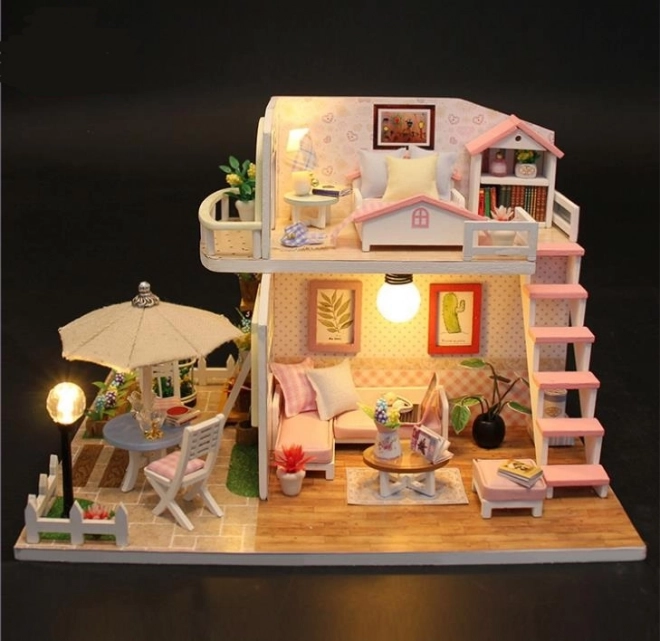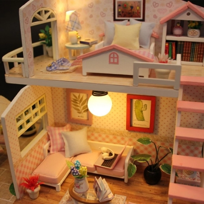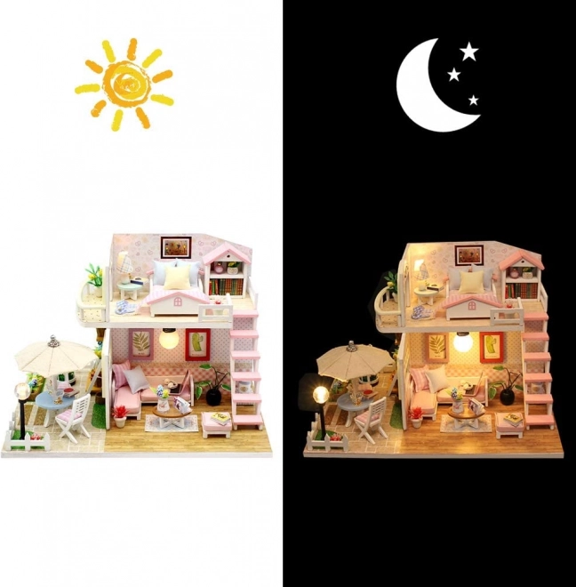 Dřevěný domeček pro panenky k sestavení s LED, 19,5 cm
