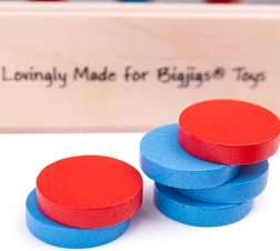Masivní dřevěné provedení je příjemné na dotek a odolné vůči každodennímu používání. Povrch žetonů je ošetřen netoxickými barvami a laky a výrobek splňuje aktuální evropské bezpečnostní normy, takže je ideální do dětských pokojů i herních koutků.