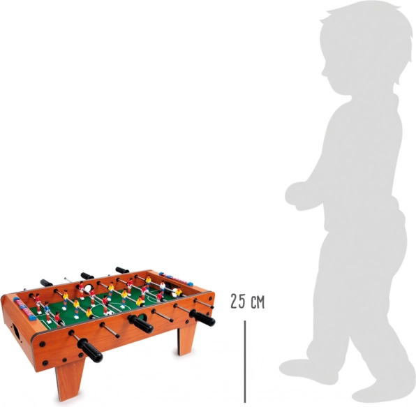 Velký stolní fotbal small foot je ideální rodinná hra, která se snadno položí na jakýkoliv stůl. Díky kompaktním rozměrům a pevnému zpracování z lakovaného dřeva, kovu a odolného plastu je připraven na každodenní zápasy. Zelené hřiště s rozměry 60 × 34 cm nabídne plynulou hru a pohodlné ovládání hráčů.