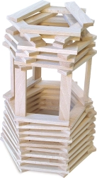 Jednotlivé destičky umožňují volně stavět věže, mosty i vlastní architekturu. Děti si procvičí fantazii, trpělivost a jemnou motoriku.