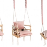 Díky univerzálnímu vzhledu v růžové barvě se houpačka skvěle hodí do dětského pokoje a podporuje skandinávský styl interiéru. Je ideální pro klidné houpání a zábavu dětí, které již umí samostatně sedět.