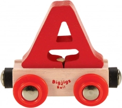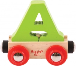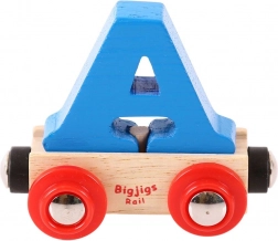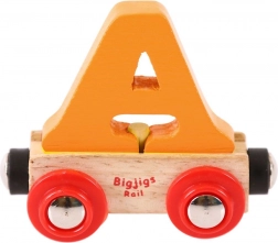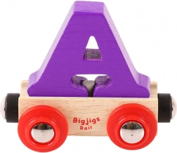 Dřevěný vagónek na vláčkodráhu s písmenem A nabízí dětem zábavný a zároveň vzdělávací zážitek. Každé písmeno je snímatelné a zaměnitelné s jinými prvky, což jej činí vhodným pro vytváření vlastních sad jmen či názvů.