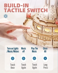 Díky dotykovému ovládání lze samostatně řídit pohyb i hudbu, takže si zážitek přizpůsobíte náladě. Střední obtížnost, přibližně 6 hodin stavby a 289 dílků z kvalitního dřeva a kovu dělají z modelu skvělý dárek pro kreativní teenagery i dospělé. Po dokončení se stane stylovou dekorací poličky, pracovny či obývacího pokoje.