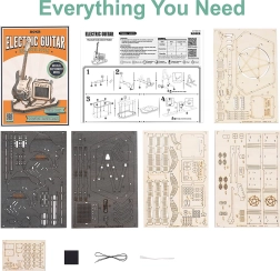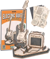 Toto dřevěné 3D puzzle elektrické kytary potěší všechny milovníky muziky i elegantních dekorací. Model je navržený pro vystavení – bez pohyblivých částí, s čistým přírodním vzhledem a precizně vyřezanými detaily, které vyniknou v každém interiéru.