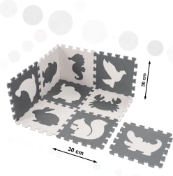 Velké pěnové puzzle se zvířátky jsou ideální pro první krůčky i každodenní hry. Z jednotlivých dílů snadno složíte hrací podložku nebo ohraničíte zónu pro dítě. Vyjímatelné tvary podporují rozpoznávání tvarů, jemnou motoriku a logické myšlení. Kontrastní barvy a lehce strukturovaný povrch stimulují zrak i hmat.