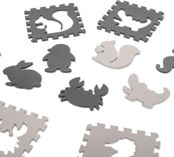 9 dílů o rozměru 30 × 30 cm poskládáte do podložky 85 × 85 cm. Dílky lze kombinovat, přenášet a rychle uklidit do praktického sáčku.