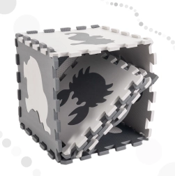 Materiál EVA je pružný, tlumí nárazy a zároveň se velmi snadno udržuje – stačí otřít vlhkým hadříkem. Díly do sebe přesně zapadají, takže montáž i demontáž je otázkou chvilky. Stylové provedení navíc poslouží jako dekorativní prvek dětského pokoje.