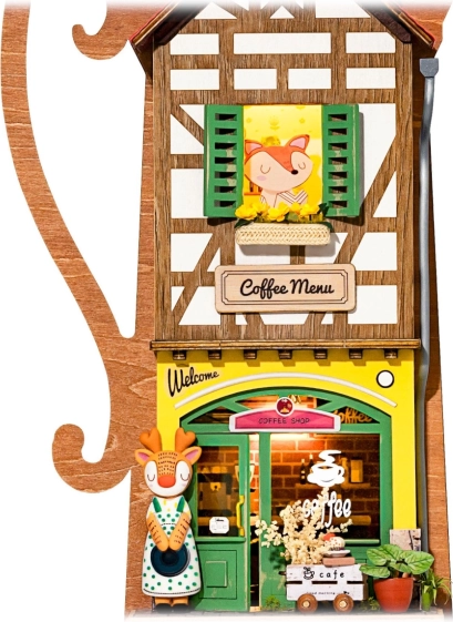 Obsah balení zahrnuje vše potřebné pro montáž, včetně dřevěných dílků, dekorací, barev, lepidla, štětce a pinzety. Osvětlení je snadno nastavitelné a rychle uváděné do provozu pomocí spínače. Mikrotužkové baterie (2xAAA) nejsou součástí balení, dodáváno s podrobným návodem.