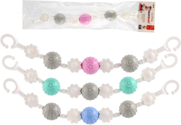 Závěsná hračka na kočárek s kvítky a kuličkami