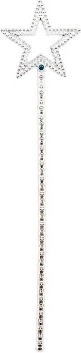 Hůlka s detailně zdobenou stříbrnou hvězdou a malým modrým kamenem na vrcholu přináší dětem kouzelný pocit.