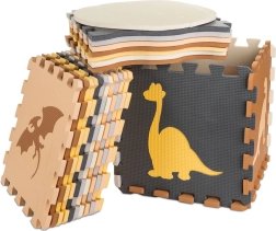 Tato pěnová podložka puzzle podporuje rozvoj dětské fantazie a motoriky. Vyjímatelné tvary dinosaurů slouží jako zábavný sorter – děti trénují rozpoznávání tvarů a koordinaci při vkládání motivů zpět na své místo. Kontrastní barvy a příjemná, strukturovaná povrchová úprava stimulují zrak i hmat.