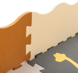 EVA pěna o tloušťce 1 cm tlumí pády a izoluje od studené podlahy. Protiskluzový povrch zvyšuje stabilitu při hře i lezení.