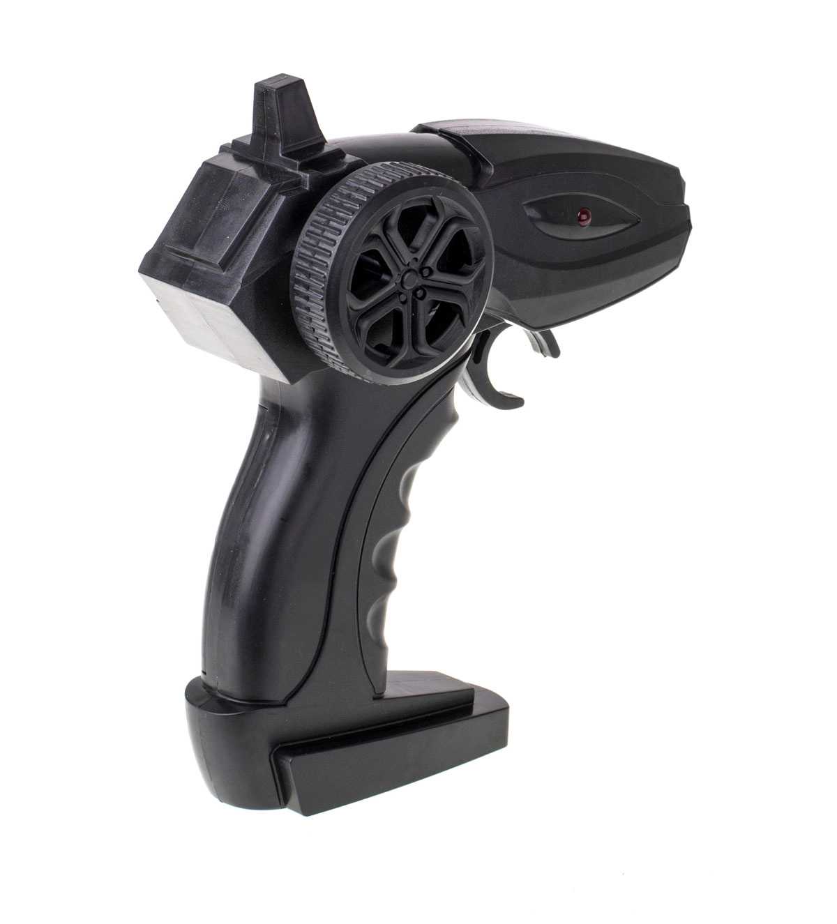 Moderní vysílač 2,4 GHz s pistolovou rukojetí zajišťuje stabilní dosah až 60 m a jízdu bez rušení.