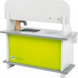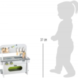 Kuchyňka je vyrobena ze 100% FSC dřeva, takže při hraní podporujete udržitelné lesní hospodaření. Elegantní design v neutrálních barvách se hodí do každého interiéru a díky jednoduché montáži ji snadno přenesete nebo uklidíte.