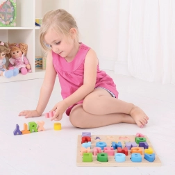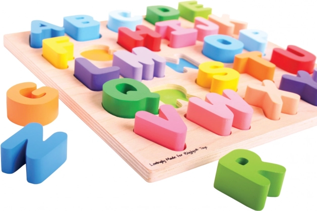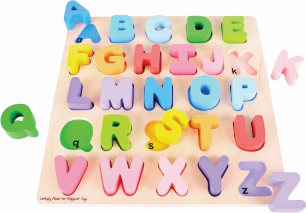 Velká dřevěná abeceda Bigjigs nabízí dětem jedinečnou možnost seznámit se s písmenky díky její hravé a edukativní funkci. Každé písmeno je vesele barevné, což usnadňuje poznávání a zapamatování. Puzzle je vyrobeno z vysoce kvalitních materiálů, je bezpečné a ideální pro malé dětské ruky.