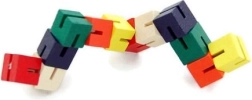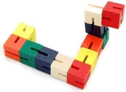 Barevný dřevěný hlavolam ve tvaru hada nabízí nespočet možností, jak děti mohou zkoumat svou kreativitu. Otáčením a převracením jednotlivých segmentů si rozvíjejí zručnost a jemnou motoriku. Hračka je ideální i na cesty, díky své kapesní velikosti ji mohou děti mít stále po ruce. Dřevěné kostky jsou pevně spojeny pružnou gumou, což zaručuje její odolnost a bezpečnost.