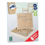 Tato dřevěná hra je skvělou pomůckou pro rozvíjení jazykových dovedností. Herní deska má připravená okýnka, do kterých můžete umístit písmenkové kostky, což zajišťuje jejich pevné umístění během hry.