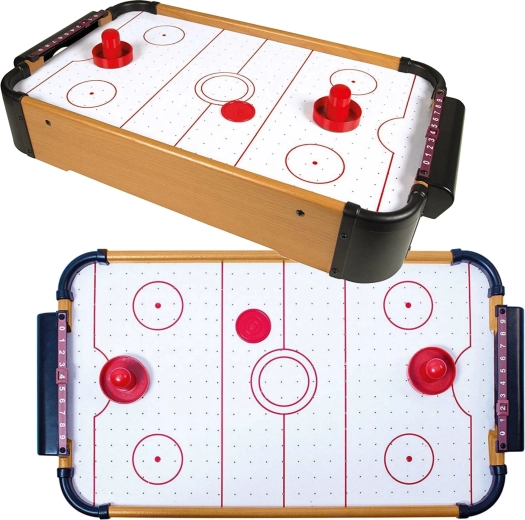 Tento stolní air hockey přináší zábavu pro dva hráče v praktickém cestovním formátu. Díky perforovanému hřišti a proudu vzduchu se puk vznáší a pohybuje extrémně svižně – ideální pro rychlé zápasy doma, na chalupě nebo u přátel.