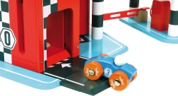 Velká dřevěná garáž VILAC Vilacity je perfektní centrum městské dopravy pro všechny malé závodníky. Díky promyšleným mechanickým detailům, jako je funkční výtah, závora a myčka, děti rozvíjejí jemnou motoriku, fantazii i logické myšlení. Set obsahuje dvě autíčka a helikoptéru, takže hra může začít ihned po sestavení.