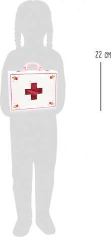 Díky realistickým doplňkům jako je stetoskop, teploměr, injekční stříkačka, masti a léky, si děti procvičí sociální dovednosti, empatii a komunikaci. Odolné materiály (dřevo, textilie a papír) zajišťují bezpečnou a dlouhotrvající zábavu.