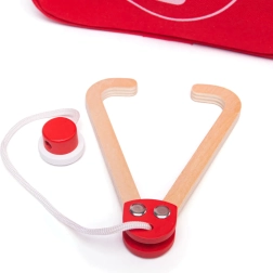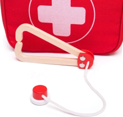 Set je vyroben z materiálů z odpovědných zdrojů a splňuje současné evropské bezpečnostní normy. Díky dřevěným prvkům, měkkým textiliím a hladkým okrajům je hraní bezpečné a příjemné. Ideální dárek pro malé doktory od 3 let.