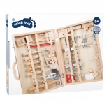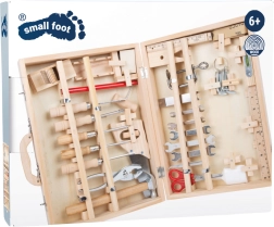 Praktický a robustní kufřík s nářadím Deluxe od small foot je ideální pro děti, které rády objevují svět oprav a tvoření. Všechny nástroje mají své vyhrazené pozice a jsou upevněny, aby zůstaly na místě i při přenášení. Kvalitní zpracování ze dřeva, kovu a plastu zajišťuje dlouhou životnost a autentický pocit z práce s nářadím.