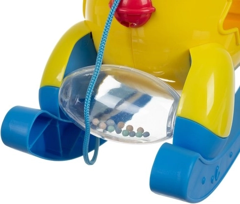 Mezi předními nohami koníka je uvnitř otočné chrastítko s korálky. Pohyblivý ocásek je zábavné místo, kde na něj batole stačí lehce zatlačit a uslyší zajímavý zvuk padajících korálků.