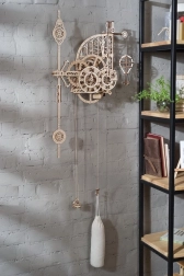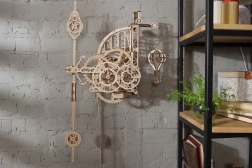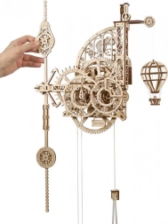 Ugears Aero jsou nástěnné mechanické hodiny z kvalitní překližky, které si sami sestavíte bez lepidla. Fascinující pohled na odhalený hodinový strojek s kyvadlem a závažím zprostředkuje jedinečný zážitek z přesného inženýrství. Čas odečítáte z dvojice ciferníků otáčejících se proti směru hodinových ručiček, zatímco dekorativní model horkovzdušného balónu pravidelně stoupá a každou celou hodinu se poklesem připomene.