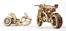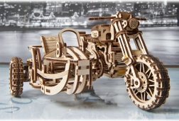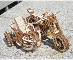 3D mechanické dřevěné puzzle – motorka se sajdkárou