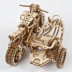 Objevte kouzlo mechaniky s dřevěným modelem UGEARS motorky se sajdkárou. Tento precizně vyřezávaný 3D model nabízí plně funkční pohyblivé prvky, sestavení bez lepidla a zábavné učení fyziky díky převodům a gumičkovému pohonu. Skvělá volba pro nadšence do modelů i jako stylová dekorace.