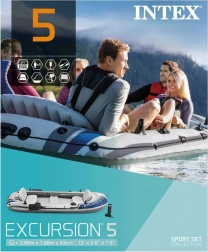 Užijte si pohodlné vyjížďky na vodě s člunem Intex Excursion 5. Díky odolnému PVC a třem nezávislým vzduchovým komorám poskytuje výbornou stabilitu a bezpečnost. Prostorné uspořádání s dvěma nafukovacími sedáky s opěrkou zajišťuje komfort posádce až pěti osob.