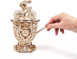 Dřevěné mechanické 3D puzzle UGEARS Cyklista – pohár s pohyblivým mechanismem