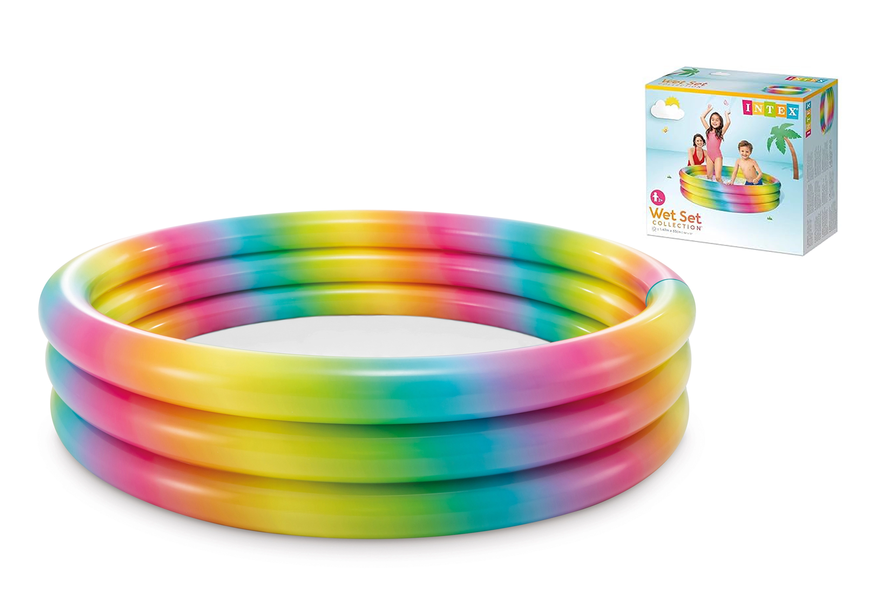 Tento barevný bazén zaujme svou atraktivní duhovou škálou, která okouzlí děti a dodá každé zahradě veselou atmosféru.