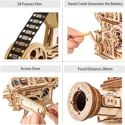 Postavte si vlastní mechanický filmový projektor z přírodního dřeva, který skutečně promítá černobílý film. Model ROKR nabízí ruční klikový pohon, laserem přesně vyřezané dílky a montáž bez lepidla. Skvělá edukační dekorace, která rozvíjí technické myšlení a potěší milovníky retro designu i kinematografie.
