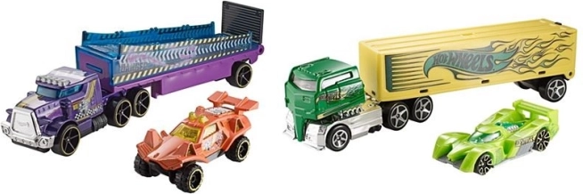 Objevte parádní náklaďáky Hot Wheels®, které inspirují děti ke kreativní hře. Každá souprava obsahuje sportovní autíčko, což zaručuje spoustu akční zábavy. Můžete si vybrat z mnoha modelů, jako je černý náklaďák s červeným okrajem a chromovanými trubkami dodávaný s modrým závoďákem, nebo zelený náklaďák se stříbrnou lebkou a výraznými zelenými plameny. Všechny modely jsou navrženy tak, aby poskytovaly vzrušující hru a umožňovaly dětem rozvíjet svou představivost.